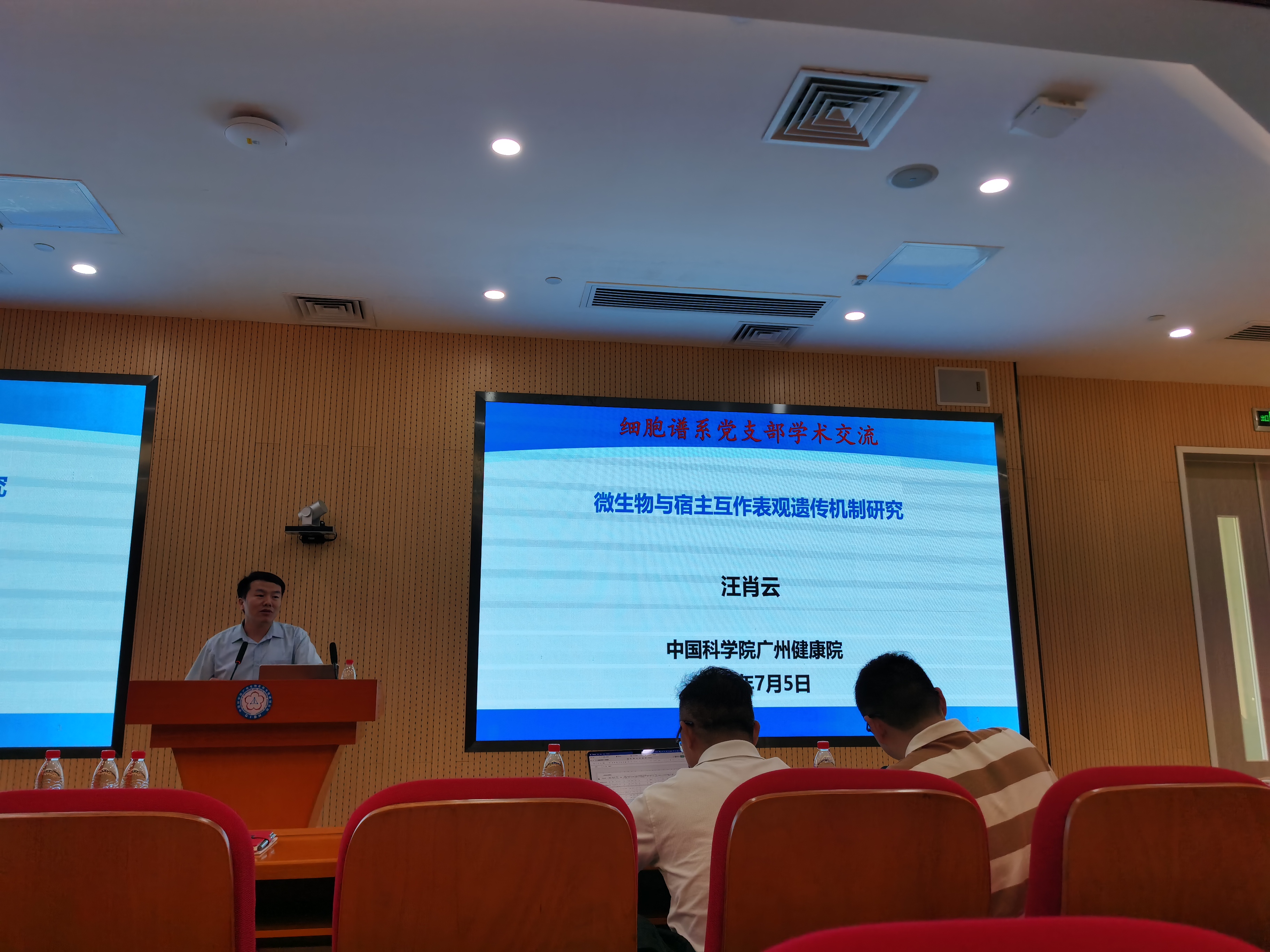 感染與免疫中心黨支部的汪肖云研究員為我們帶來了題為“微生物與宿主互作表觀遺傳機(jī)制研究”的報告。汪肖云介紹了腸道微生物和宿主相互作用,包括腸道微生物調(diào)控宿主tRNA甲基化修飾和基因表達(dá)的影響、發(fā)現(xiàn)腸道微生物代謝物膽汁酸調(diào)控宿主基因甲基化和表達(dá)等。汪肖云還和大家分享了工作設(shè)想,未來將從宏觀、微觀以及應(yīng)用等層面,深入探索微生物與宿主互作機(jī)制及傳染病防控。