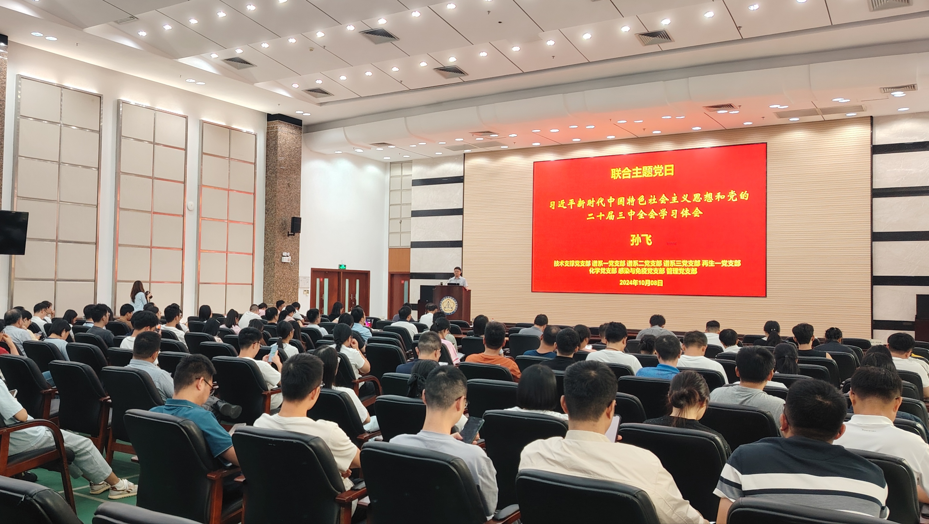 此次主題黨日吸引了研究院技術(shù)支撐黨支部、譜系一黨支部、譜系二黨支部、譜系三黨支部、再生一黨支部、化學(xué)黨支部、感染與免疫黨支部和管理黨支部的黨員、青年理論學(xué)習(xí)標(biāo)兵小組成員和師生員工等150余人參加。