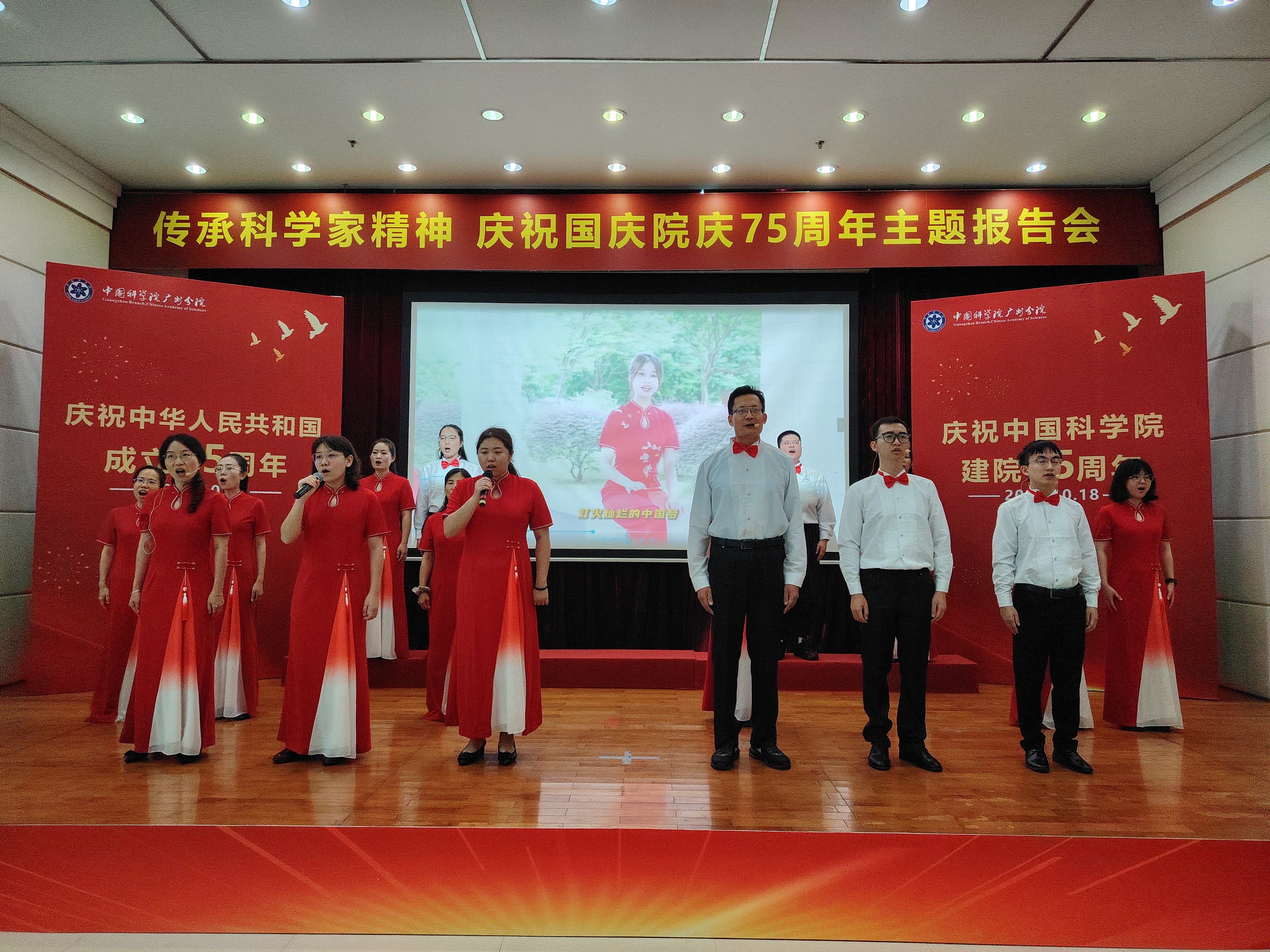 報告會上,廣州健康院合唱團帶來了壓軸節(jié)目——《燈火里的中國》。合唱團成員們身著亮麗的服裝,以飽滿的熱情和嘹亮的聲音,唱出了對祖國、對中國科學(xué)院的誠摯熱愛和美好祝愿。他們的表現(xiàn)專業(yè)、氣如長虹,充分展現(xiàn)了GIBH科技工作者積極向上的精神風(fēng)貌,完美詮釋了“健康中國、使命擔(dān)當(dāng)”的院訓(xùn)內(nèi)涵,給現(xiàn)場嘉賓和觀眾留下了積極向上、銳意進取的美好印象。