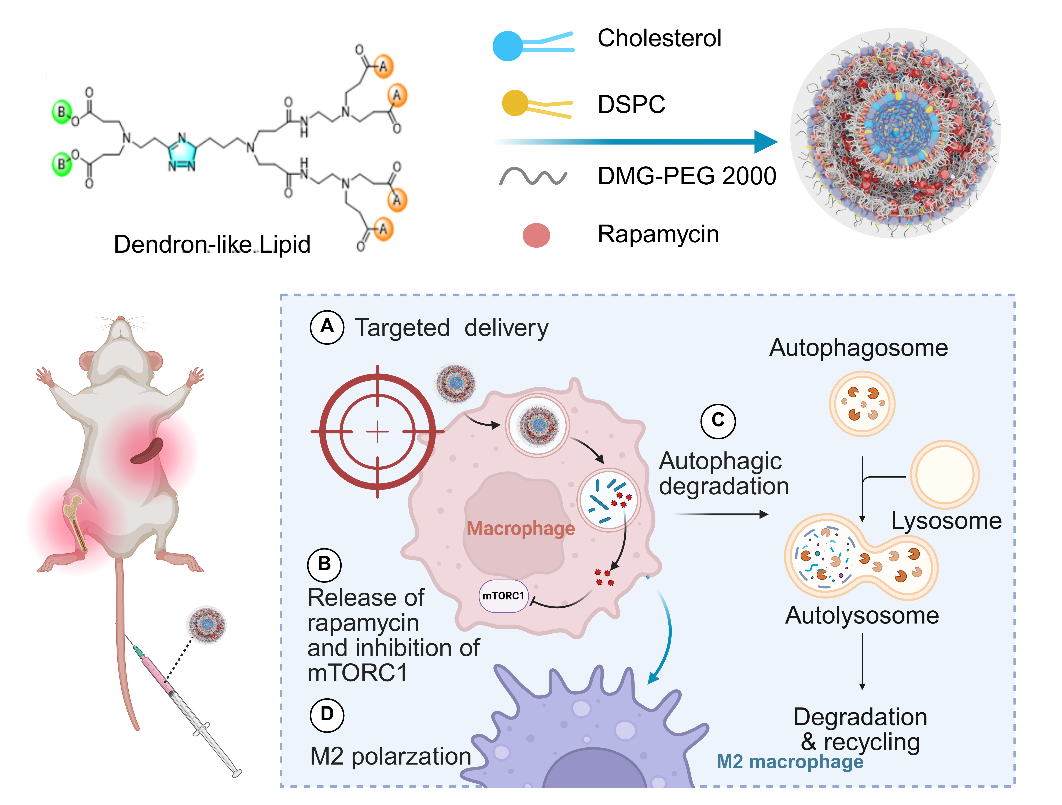 近日,中國科學(xué)院廣州生物醫(yī)藥與健康研究院巫林平研究員和中山大學(xué)附屬第三醫(yī)院林智明主任醫(yī)師團(tuán)隊(duì)聯(lián)合在Chemical Engineering Journal雜志在線發(fā)表題為“Macrophage-targeted lipid nanoparticles based on Dendron-like lipids deliver mTOR inhibitor to alleviate systemic lupus erythematosus”的研究論文。該研究合成了一系列具有不同功能化學(xué)基團(tuán)的樹枝狀類脂分子,并基于此構(gòu)建和篩選獲得具有天然靶向巨噬細(xì)胞能力的脂質(zhì)納米顆粒(LNP),進(jìn)一步驗(yàn)證了包載哺乳動物雷帕霉素靶蛋白(mTOR)抑制劑雷帕霉素的LNP可以有效的對系統(tǒng)性紅斑狼瘡(SLE)模型小鼠進(jìn)行治療,同時闡明了其對巨噬細(xì)胞mTORC1信號通路的調(diào)控機(jī)制。本研究為基于納米藥物靶向巨噬細(xì)胞的SLE治療提供了重要的理論依據(jù)和新的治療策略。