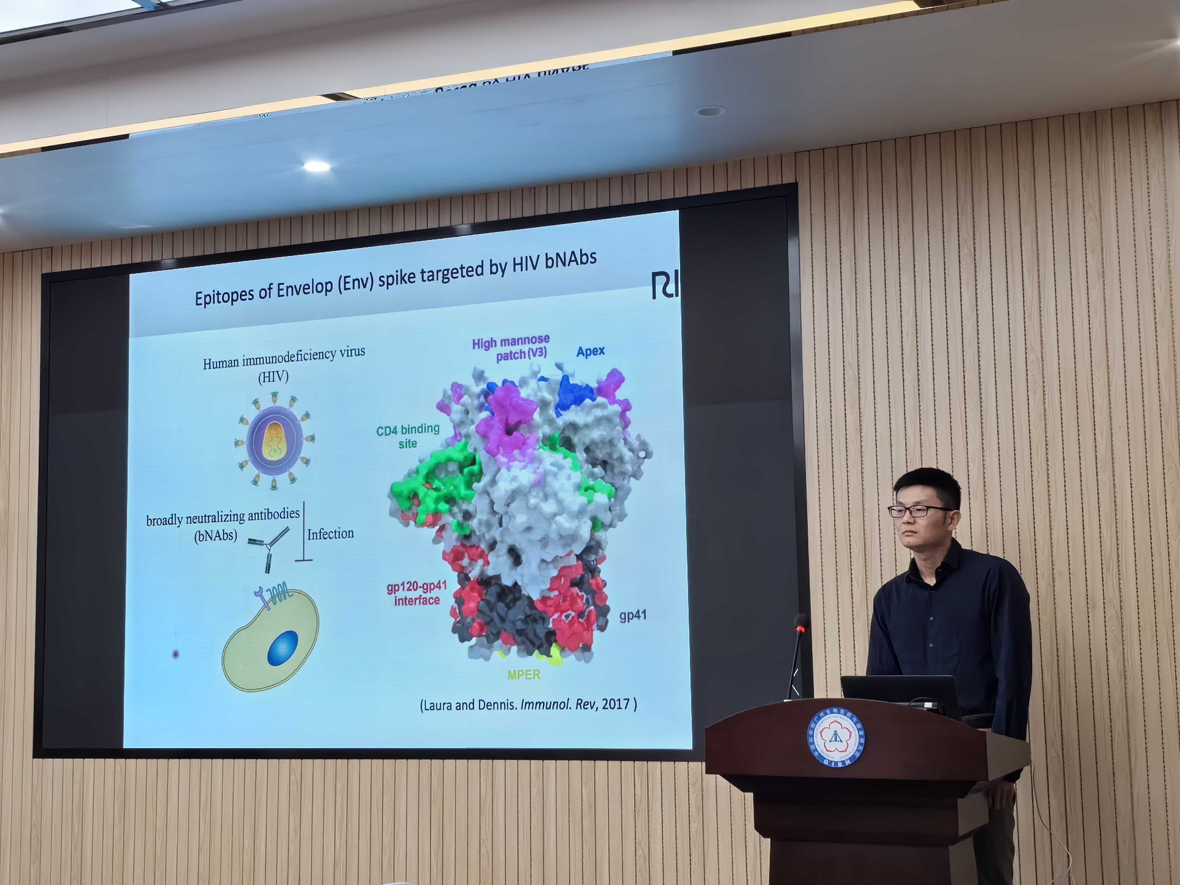 在報告中,謝振飛博士介紹通過使用人源化免疫球蛋白基因敲入小鼠模型,發(fā)現(xiàn)靶向(GT)誘導蛋白三聚體免疫原N332-GT5能活化V3-聚糖靶向bnAb BG18的種系前體細胞,并且由 N332-GT5激活的前體B 細胞可以通過兩種新型蛋白加強免疫原中的任何一種有效加強,這兩種新型蛋白免疫原旨在與脫靶 V1 結合反應具有最小的交叉反應性。以信使 RNA 脂質納米顆粒 (mRNA-LNPs) 形式遞送初免和加強免疫原可產生持久的 GC、體細胞超突變和親和力成熟,可能是 HIV 疫苗開發(fā)的有效工具。這些研究成果開辟了開發(fā)有效HIV疫苗的新策略。