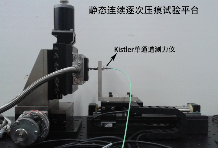 靜態(tài)連續(xù)逐次壓痕試驗平臺,該試驗平臺包括:直線電機、Kistler 9203單通道測力儀等設備。其驅(qū)動通過Renishaw光柵尺閉環(huán)系統(tǒng)控制,重復定位精度可達0.5μm,其Kistler單通道測力系統(tǒng)的采樣頻率可達27kHz。該試驗平臺可針對材料進行逐次連續(xù)的壓痕試驗,從而研究其靜態(tài)力學性能。