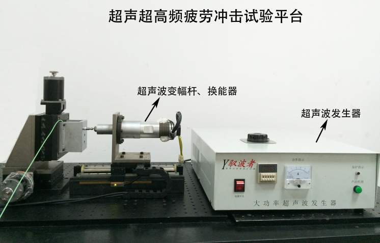 超聲超高頻疲勞沖擊試驗平臺(f > 1 kHz),該試驗平臺包括:直線電機、Kistler 9203單通道測力儀、超聲波變幅桿、換能器、超聲波發(fā)生器等設備。其驅(qū)動通過Renishaw光柵尺閉環(huán)系統(tǒng)控制,重復定位精度可達0.5μm,其Kistler單通道測力系統(tǒng)的采樣頻率可達27kHz。該試驗平臺可針對材料進行超高頻疲勞沖擊試驗,從而研究其抗超高頻疲勞性能。
