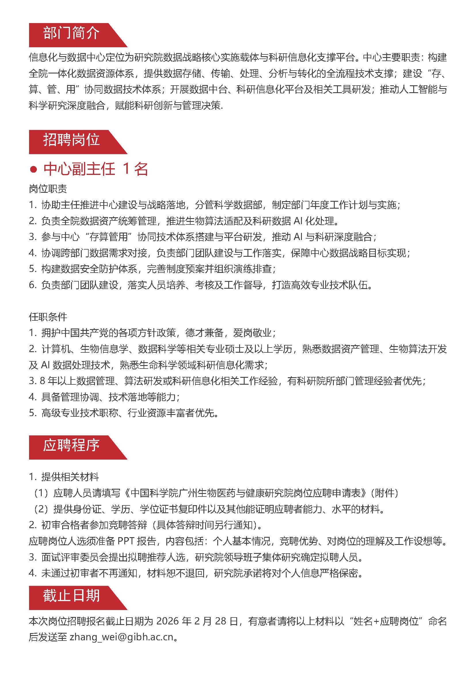 信息化與數(shù)據(jù)中心崗位招聘啟事(中心副主任)