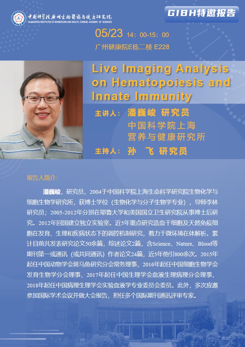 2025年5月23日特邀報(bào)告:Live Imaging Analysis on Hematopoiesis and Innate Immunity