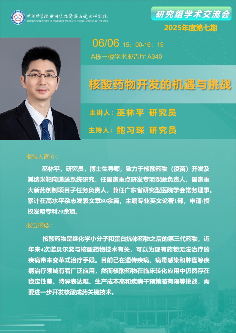 2025年6月6日研究組學(xué)術(shù)交流會(2025年度第七期):核酸藥物開發(fā)的機(jī)遇與挑戰(zhàn)