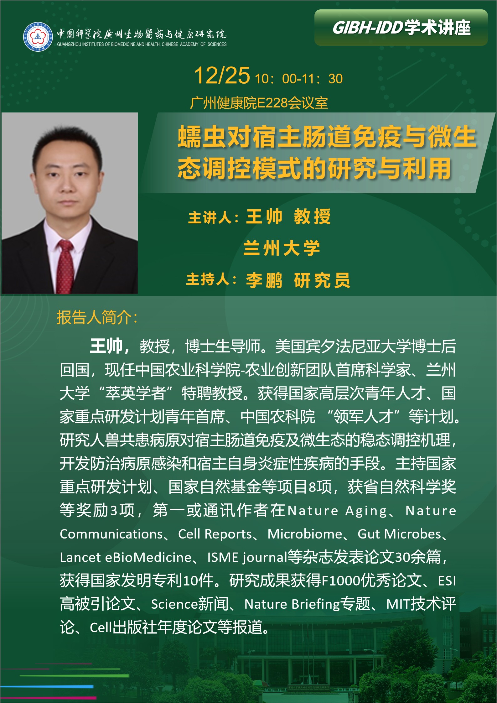 2025年12月25日學術講座:蠕蟲對宿主腸道免疫與微生態(tài)調控模式的研究與利用